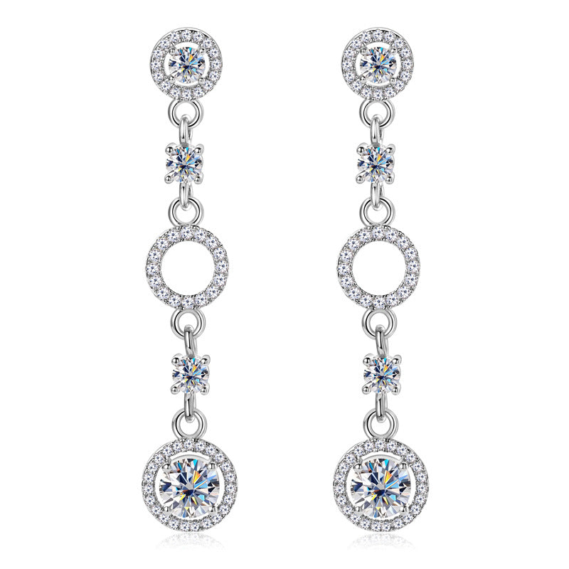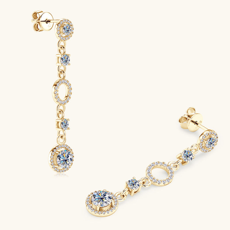 Bring the brilliance of the cosmos to your style with the ASN Aurora Orbit Moissanite Halo Drop Earrings. Inspired by the enchanting dance of celestial bodies, these earrings feature a captivating sequence of sparkling halos, luminous moissanite stones, and open orbit motifs that shimmer with every movement. The design flows gracefully down the ear, culminating in a radiant halo drop that captures the light from every angle.