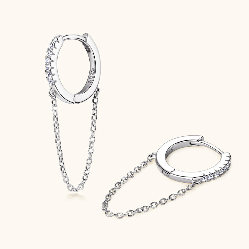 ASN Dusk Loop Moissanite Pavé Chain Huggies—where minimalism meets after-dark glamour. For those who love a little edge with their elegance.